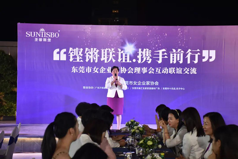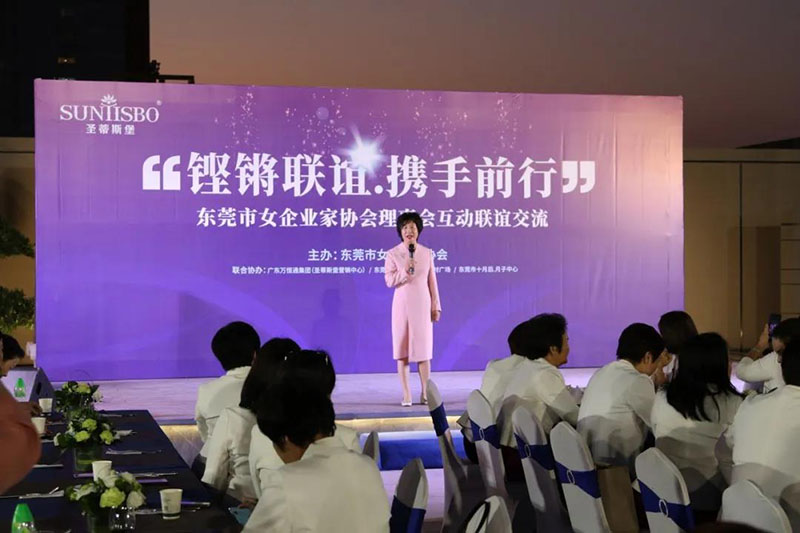 接下来,东莞市女企业家协会理事会会长叶小红女士上台发言,她表示非常感谢尊龙凯时集团举办此次联谊交流会,同时,对我们的产品和企业文化给出了很高的评价。她号召东莞市女企业家协会以后要更多的举办此类交流联谊活动,以此增进会员企业之间的联系和了解,为未来进一步交流发展开创新局面!她希望我们能携手同行,强强联手,共赢未来,共创新辉煌!