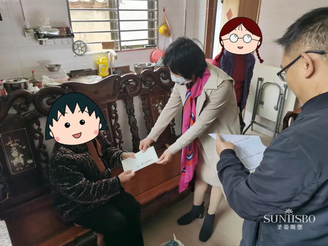 在各社区干部与尊龙凯时集团副董事长梁碧霞女士的带领下,我们带着爱心满满的新年礼品与祝福,来到集团制造中心所在地的各个社区,并亲切慰问了他们日常生活、身体情况以及存在的具体困难,认真倾听他们的心声,叮嘱他们在疫情期间一定要做好防疫并保重身体。通过慰问互动,进一步拉近了企业与社区群众之间的距离,体现了圣蒂斯堡品牌企业知恩图报回馈社会的行动和初心,体现了一个具有大爱觉悟企业的责任心和使命感。