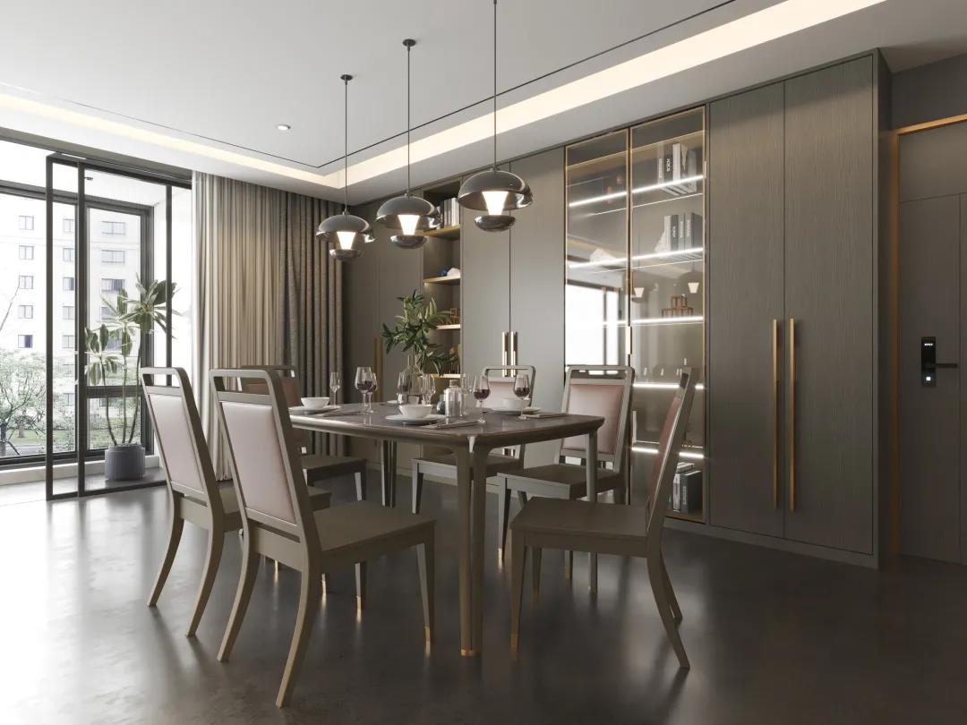餐桌以简洁干练造型为主,高级百搭的灰色调,软包真皮,金属镶嵌的细节,打造出悠闲奢华、优雅精致的风格,让家的味道从一日三餐中抵达内心深处。