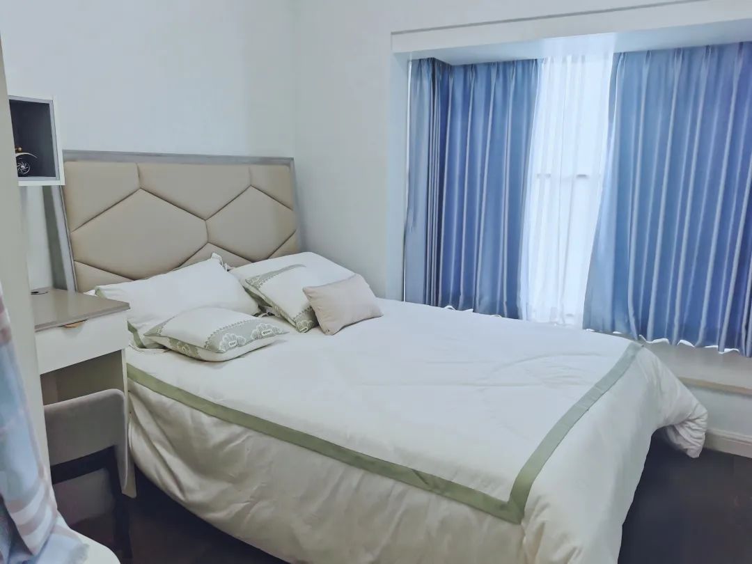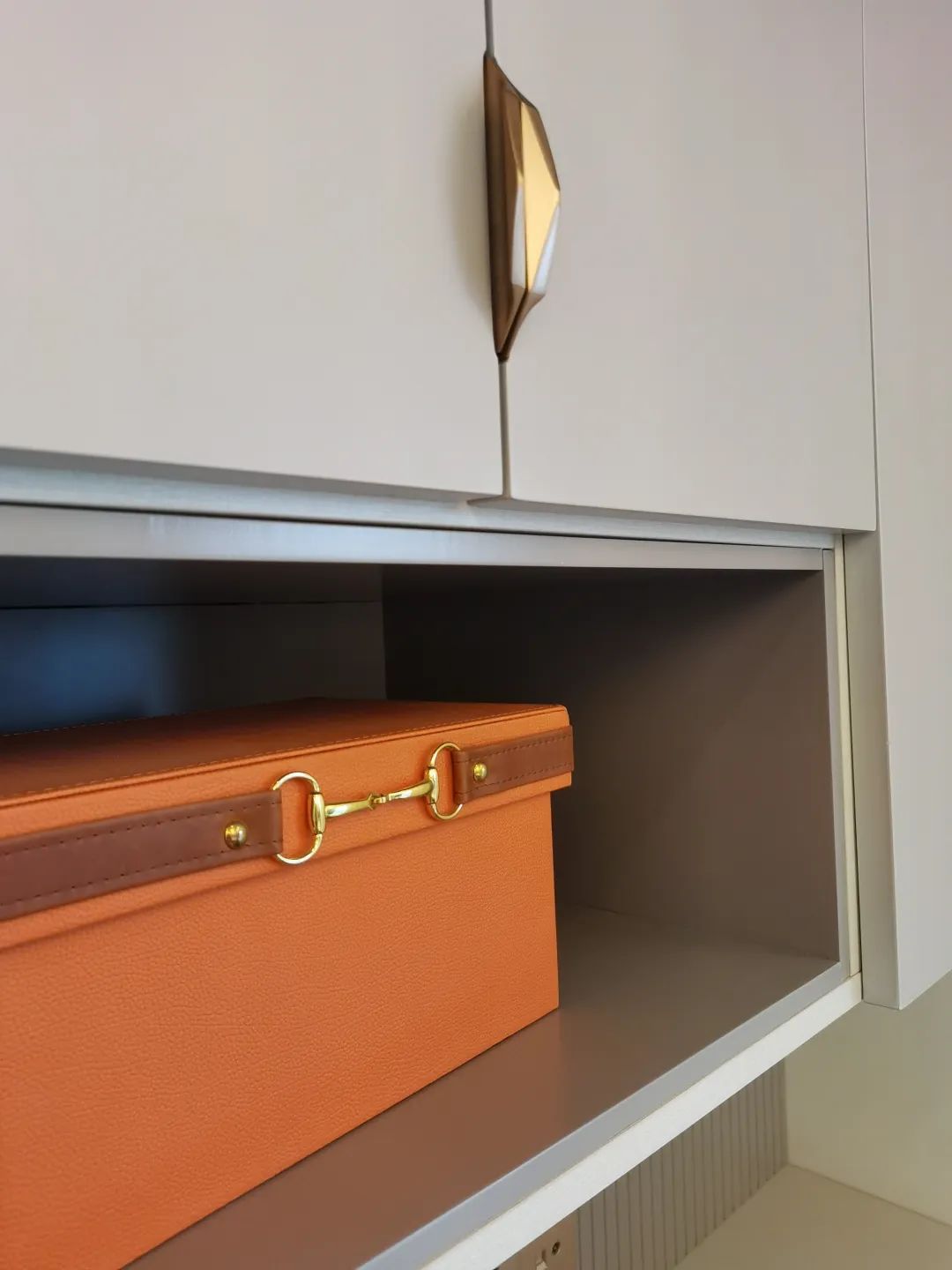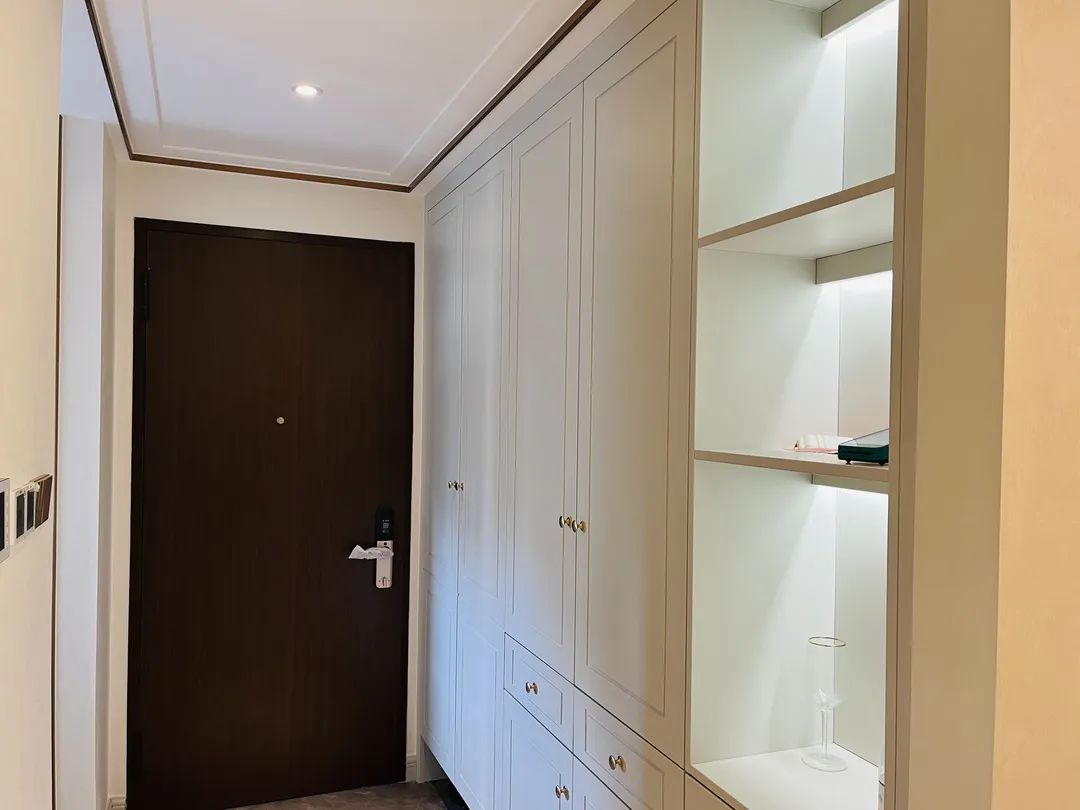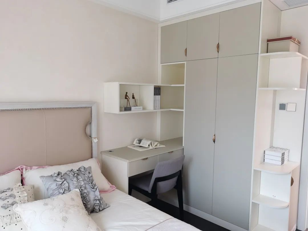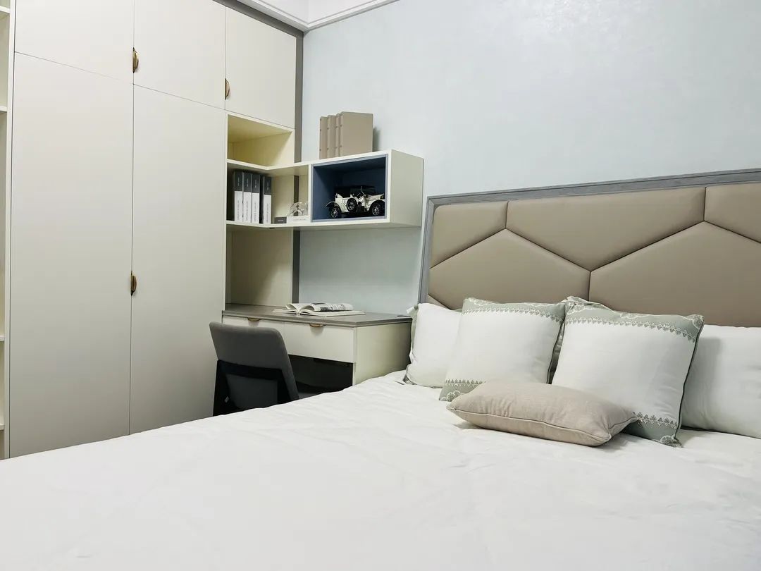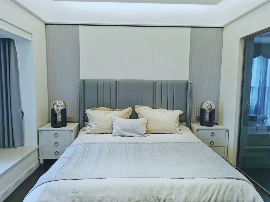 主卧睡眠空间与衣帽间相隔半扇透玻璃门,